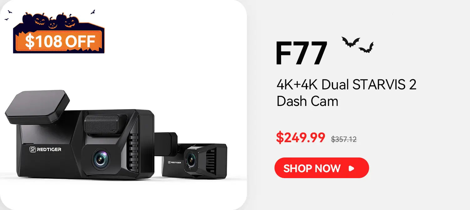 Redtiger F17 3-Channel 5G Wifi Dash CamFrom $249.99 USD | Redtiger F7NT Touch Screen 4K Dual Dash CamFrom $199.99 USD | ||||||