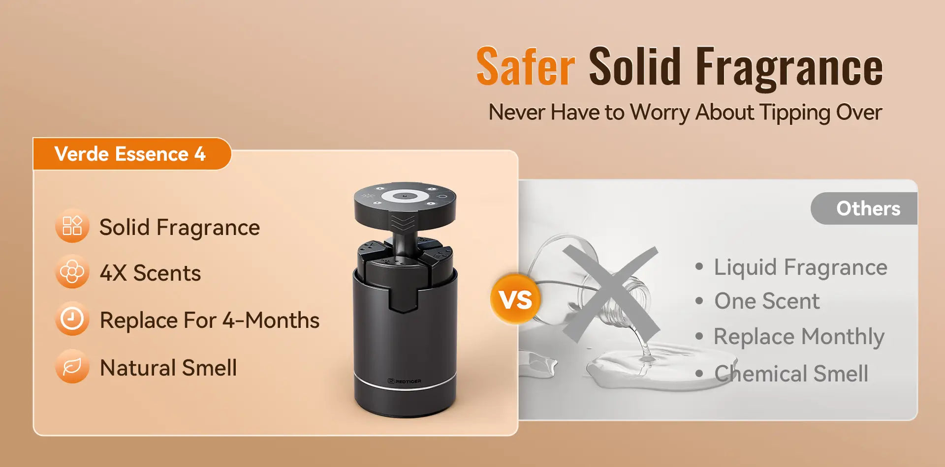 - The diffuser can hold up to four scents, and you can switch between them with just one click