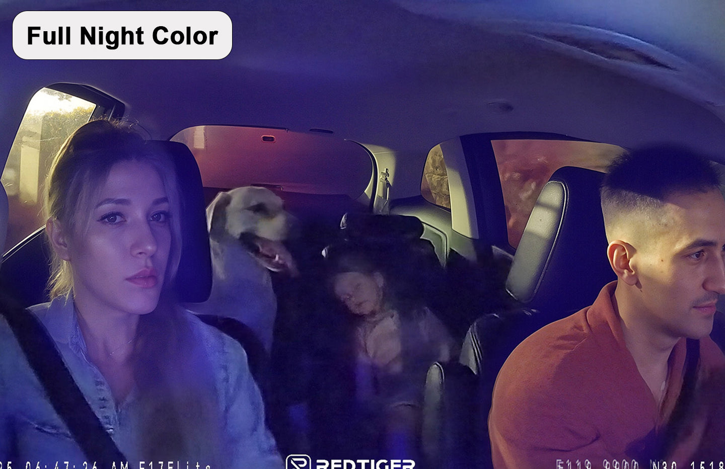Unlike other dash cams that rely on dull infrared black-and-white cabin night vision, the F17 Elite delivers vibrant full-color night vision— sharper, richer, and detailed, so every moment is captured even after dark.