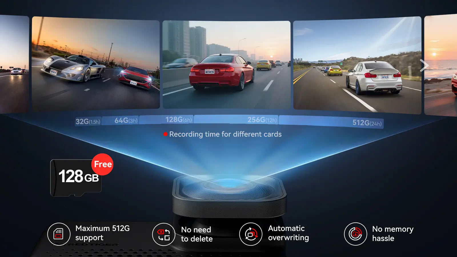You will get a REDTIGER industrial-grade 128GB TF card for free. If you think you need a larger memory card, please select the additional configuration on the F17Elite page, or enter and order from the link below. Redtiger SD Card 32GB-256GB.F17Elite supports memory cards up to 1TB
