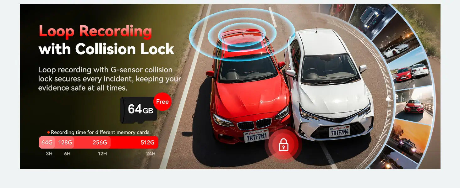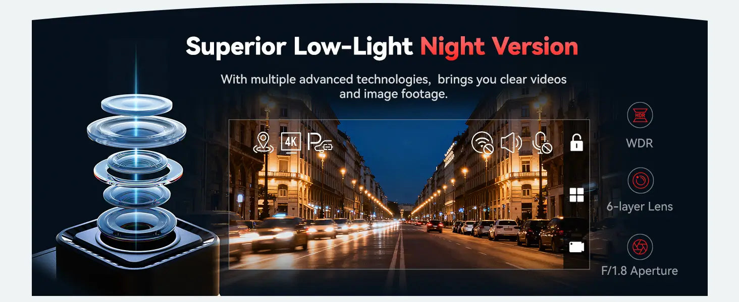 • Featuring with 170° Wide Angle, 24/7 Parking monitoring (Free Hardwire kit), WiFi & App control, GPS trucking, Super Night Vision, Loop Recording!