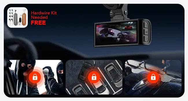 The dash cam will automatically record a 10-second video and lock it up when certain emergency occurs.Peace of Mind When You Leave Your Vehicle.Hardwire kit is needed (Free).