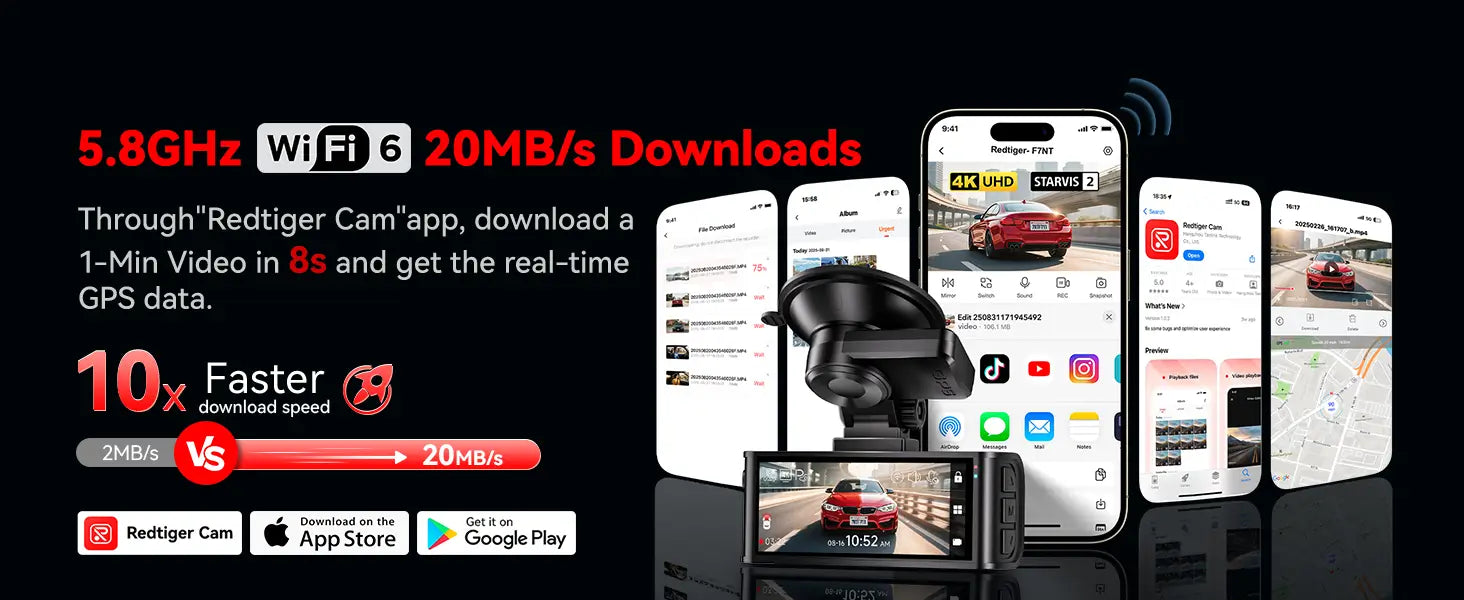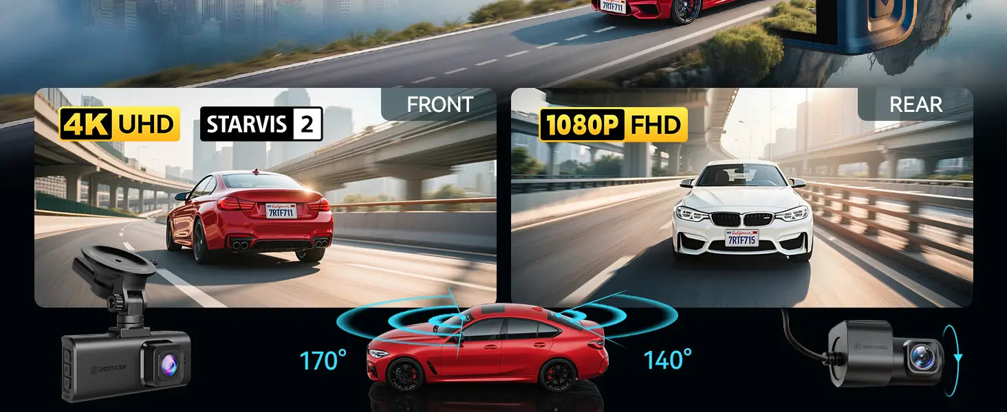 Redtiger F7NT 4K Sony STARVIS 2 HDR WiFi 6 Touch Screen Voice Contral Dual Dash Cam
