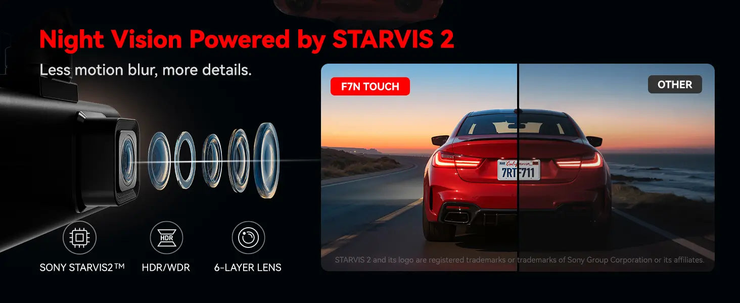 - F7NT Basic: F7NT Basic: 4K (Sony STARVIS 2) Front + 1080P FHD Rear + Hardwire Kit + 128GB SD card + 24 Months Warranty.