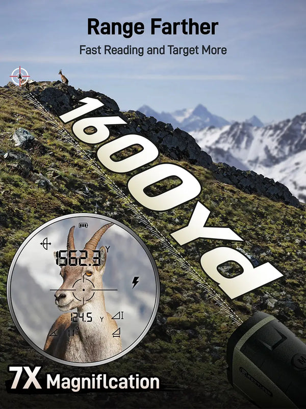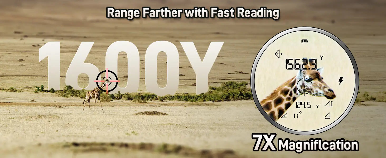 - [Supreme Range Performance]Laser range finder for hunter brought by Redtiger in 2024 featuring a groundbreaking 1600-yard range and 7X magnification. Hunting range finder maintains accuracy with ±0.5-yard, precise with fast readings <0.5s. Confidently spot targets and never miss a shot at extreme distances.