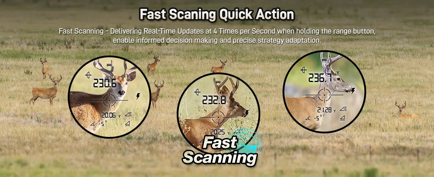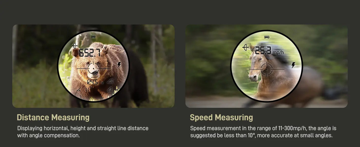 - [Enhanced Hunting Precision]Range finder for shooting has two mode switched by one button press offers horizontal distance, angle, height, straight-line distance and speed. Whether you are bow hunting or using a rifle, this range finder for shooting has you covered at any hunting scenario.