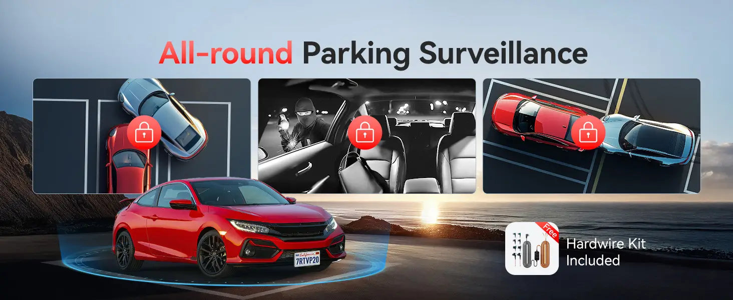 The intelligent parking mode automatically detects and records collisions or suspicious activity, keeping your car protected against hit-and-runs and vandalism.