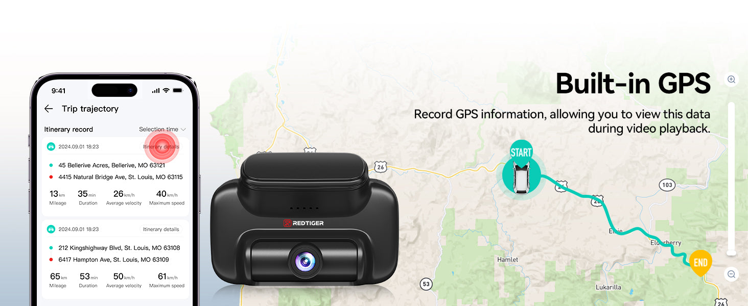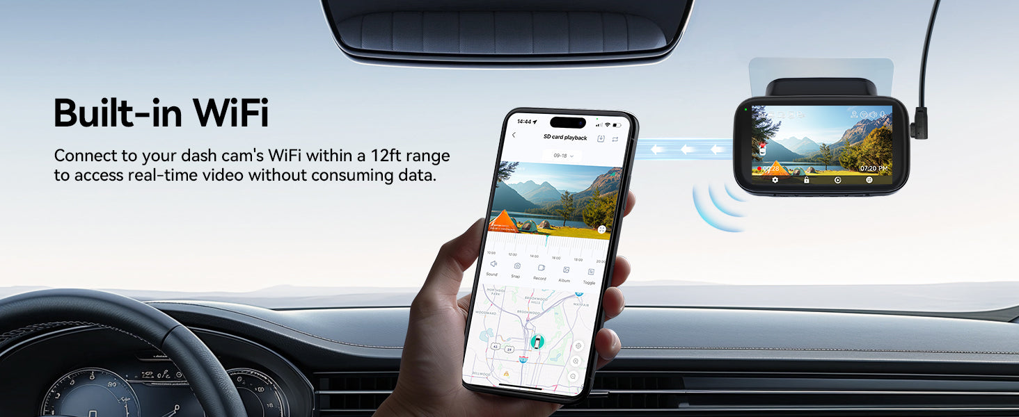 • Cloud Storage & Instant Alerts: Receive real-time collision alerts by app, with a 15-second video clip that automatically uploaded to the cloud.