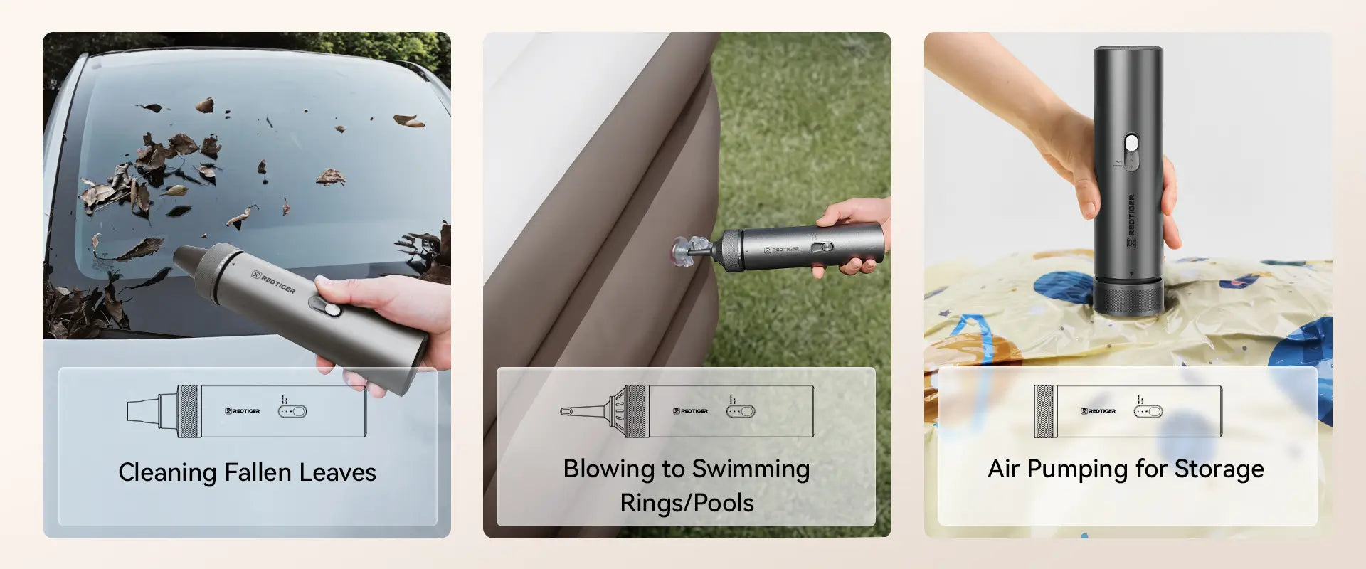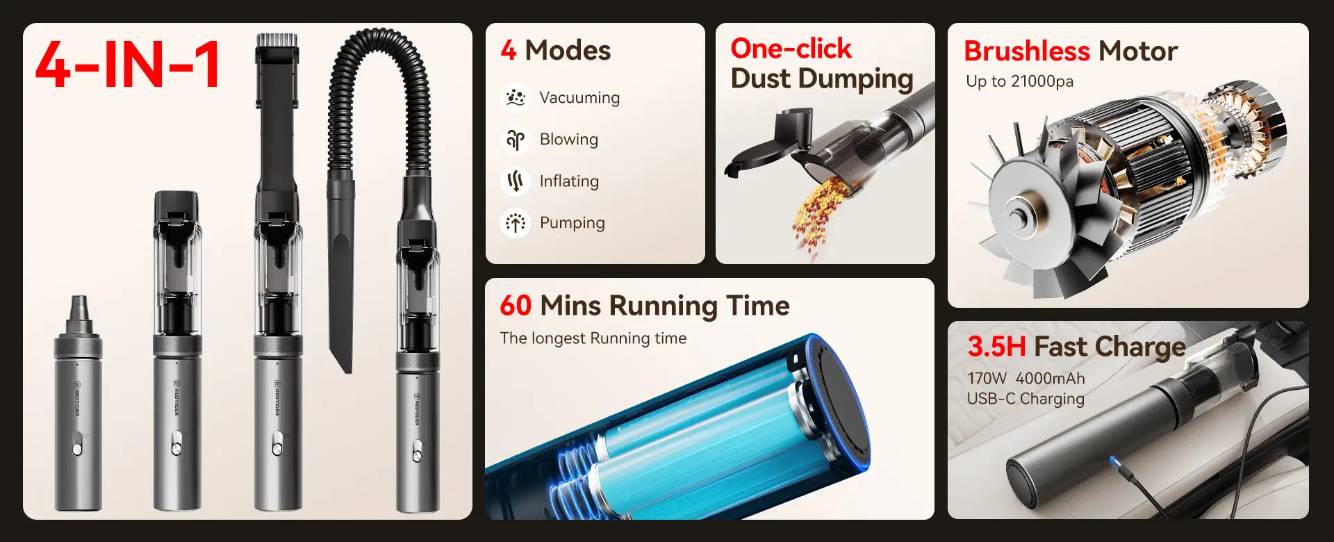 - Versatile with Multiple Attachments: Comes with various brush heads for different tasks like vacuuming, blowing, inflating, and pumping. Perfect for cleaning cars, homes, and even inflating camping gear and mattresses.