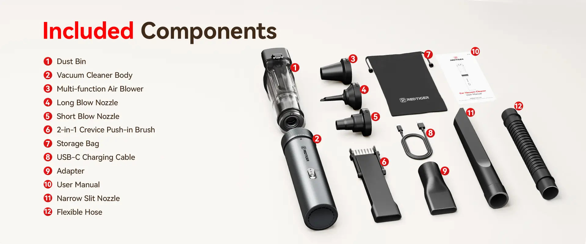 REDTIGER Car Vacuum Wireless Portable Handheld 21000PA