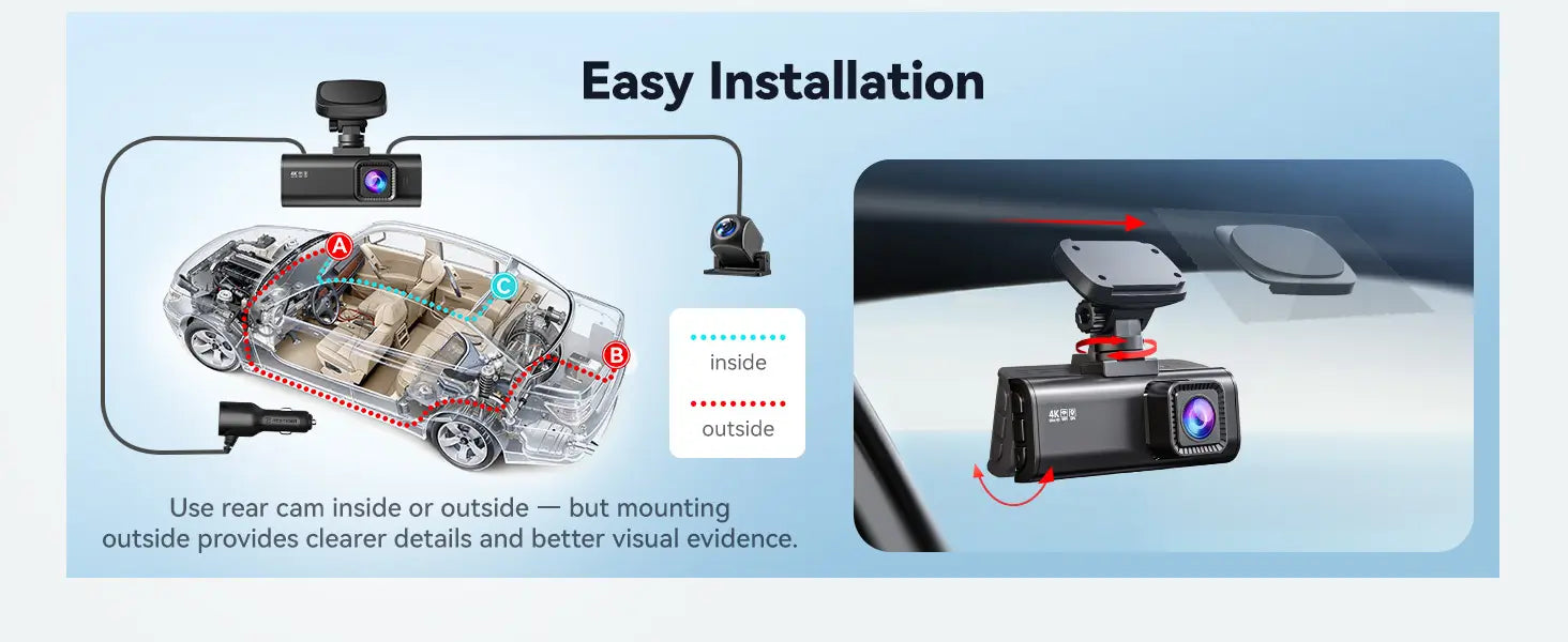 • F7N:4K Front Dash Cam+ Hardwire kit+ 1080P Water Proof Rear Camera+ 18-Months Warranty